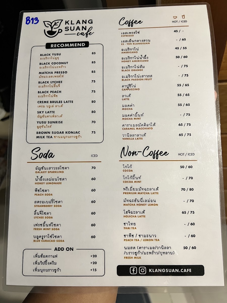 Klangsuan Cafe - กลางสวนคาเฟ่ Menu